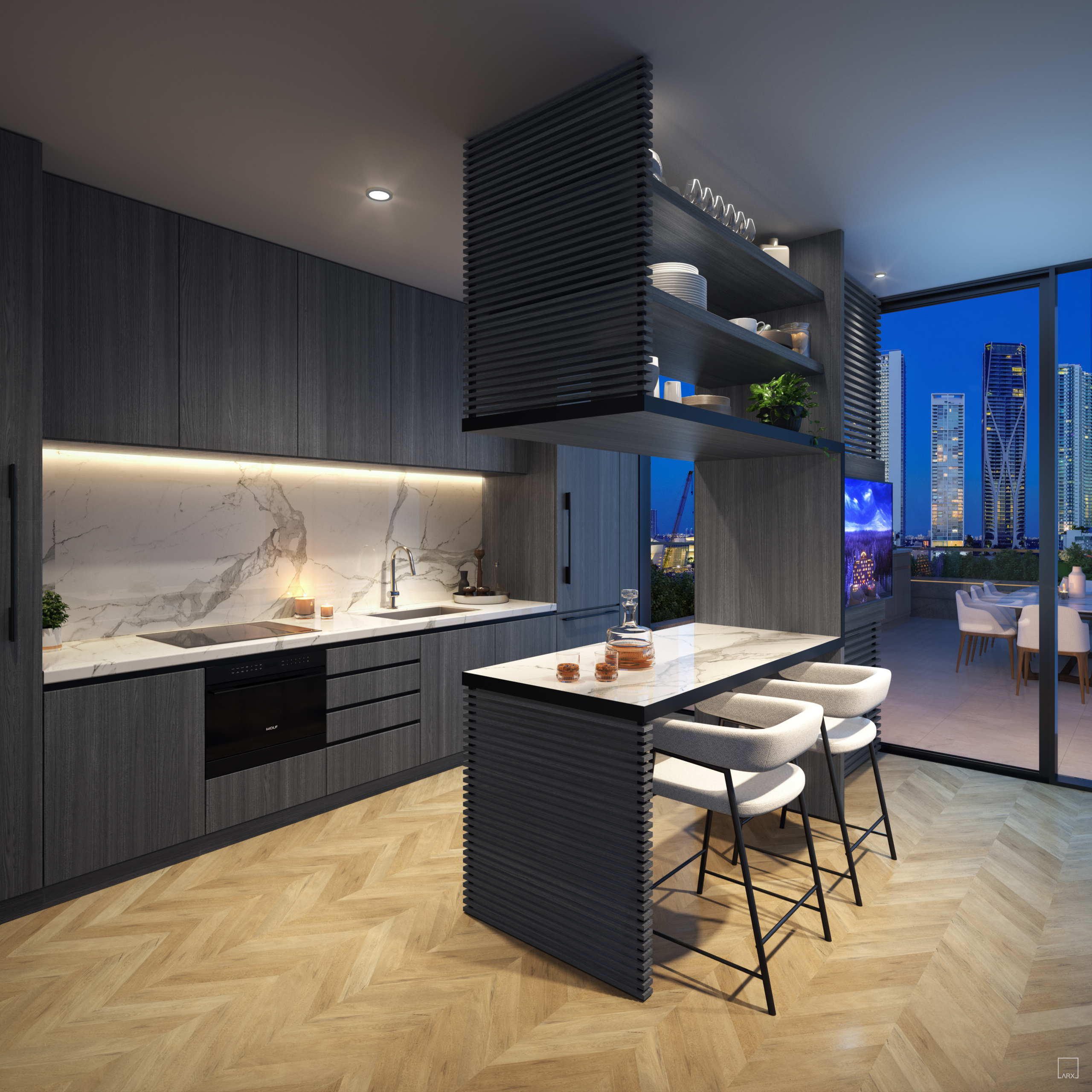 Esta torre de lujo de 44 pisos con 659 apartamento de lujo, fue diseñada por Estudio de arquitectura de renombre internacional Seiger Suárez Arquitectos e infundido de arte atención en todo. Cada uno completamente terminado y Estudio amueblado y residencia de 1 dormitorio tiene ha sido cuidadosamente curado.